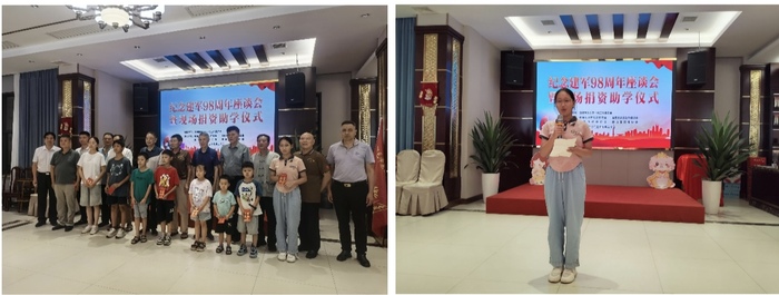 紧接着,湖南红色文化研究院副院长、国防科技大学原工程兵学院大校、益阳毛泽东战法研究会名誉会长蔡建勋登场。他以《红军鄢辉在井冈山的热血征程》为题,为大家带来了一场震撼心灵的宣讲。蔡建勋大校用生动鲜活的语言,结合详实可靠的史料,将益阳老红军鄢辉英勇无畏、为革命事业无私奉献的精神风貌栩栩如生地展现在大家眼前。现场人员无不被鄢辉的故事所感动,被革命先辈们的崇高精神所鼓舞,心中的红色火焰被再次点燃。 随后,现场捐资助学仪式将活动推向了最高潮。益阳市政协原正厅职副主席、益阳市关工委执行主任陈恒祥首先为爱心企业益阳市农福万邦农产品店代表、退役军人李韦授牌,表彰他们刚开业,就热情参加公益助学活动。接着 10 名贫困学生代表面带微笑,眼中闪烁着希望的光芒,缓缓走上台。与会领导们满怀关爱,亲手将助学金交到学生手中,他们亲切地鼓励学生们要努力学习,勇敢地克服生活中的困难,坚信知识能够改变命运。受助学生代表盛子芯激动得眼眶泛红,她坚定地表示:“一定会铭记这份珍贵的关爱,在今后的学习中加倍努力,用优异的成绩回报社会的关爱,将来也要像帮助我们的人一样,去帮助更多需要帮助的人。” 在会议过程中,蔡建勋还为新成立的红日艺术团授旗。授旗仪式庄重而神圣,象征着红日艺术团肩负起传承红色文化、弘扬革命精神的使命。紧接着,红日艺术团的文艺工作者们为大家带来了一场精彩纷呈的文艺表演。《解放军进行曲》的激昂旋律,仿佛让人们看到了人民军队勇往直前的英姿;《水墨中国》以优美的舞姿展现了祖国的山河壮丽;《兵哥哥》《当兵的人》等节目则用深情的歌声表达了对军人的赞美与敬意。这 10 多个精彩的文艺节目,赢得了现场阵阵热烈的掌声和欢呼声,将活动的氛围烘托得格外热烈。 此次活动意义深远,它不仅是对建军 98 周年的深情纪念,更是一次红色精神的传承与弘扬。通过讲述革命故事、缅怀先烈功绩,让红色基因深深扎根在每个人的心中。同时,现场捐资助学仪式也彰显了益阳毛泽东战法研究会关心教育、关爱贫困学生的社会责任担当。会长简国才在活动最后坚定地表示:“以后研究会将继续积极组织开展各类公益活动,让红色基因在益阳大地代代相传,为推动全市经济社会高质量发展贡献我们的力量。”相信在社会各界的共同努力下,红色精神必将在益阳这片土地上绽放出更加绚烂的光彩,贫困学子们也将在关爱中茁壮成长,追逐属于自己的梦想。 益阳市人大原副主任、益阳市关工委副主任袁国军,益阳市政协原副主席、益阳市禁毒协会会长曾立坤,益阳市关工委副主任文潇雨和联合主办单位委员、爱心志愿者、学生代表及新闻媒体朋友近 150人参加了今天的活动。 作者/向卫国/高朝飞/学雷 编辑/王丽君 |